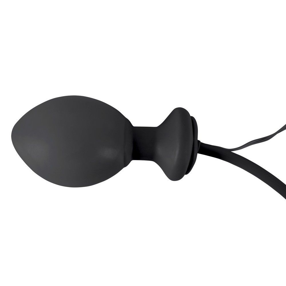 Coated in smooth black latex, 12 cm long and approximately 2.5 to 3.8 cm in diameter, it can be inflated to the desired size.
