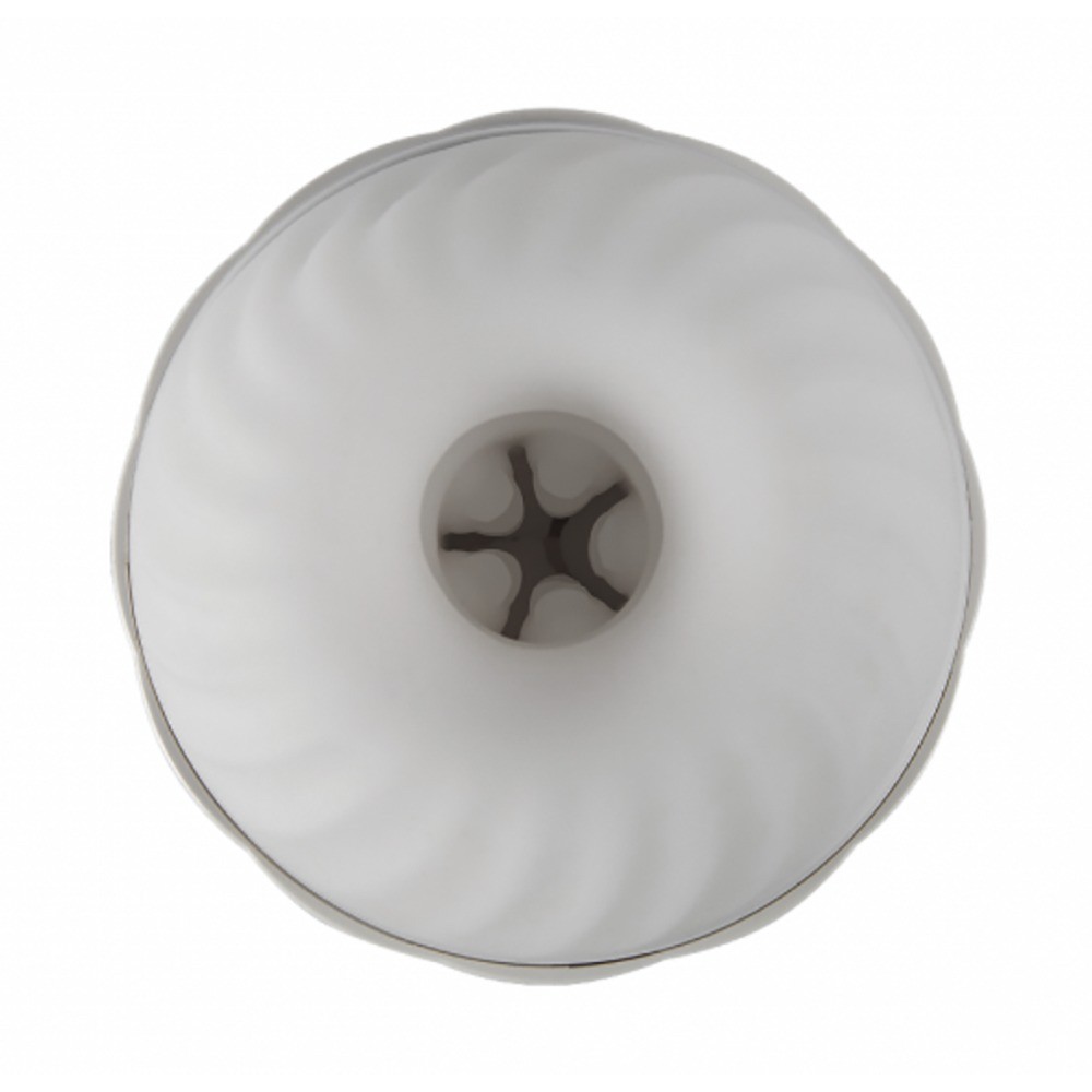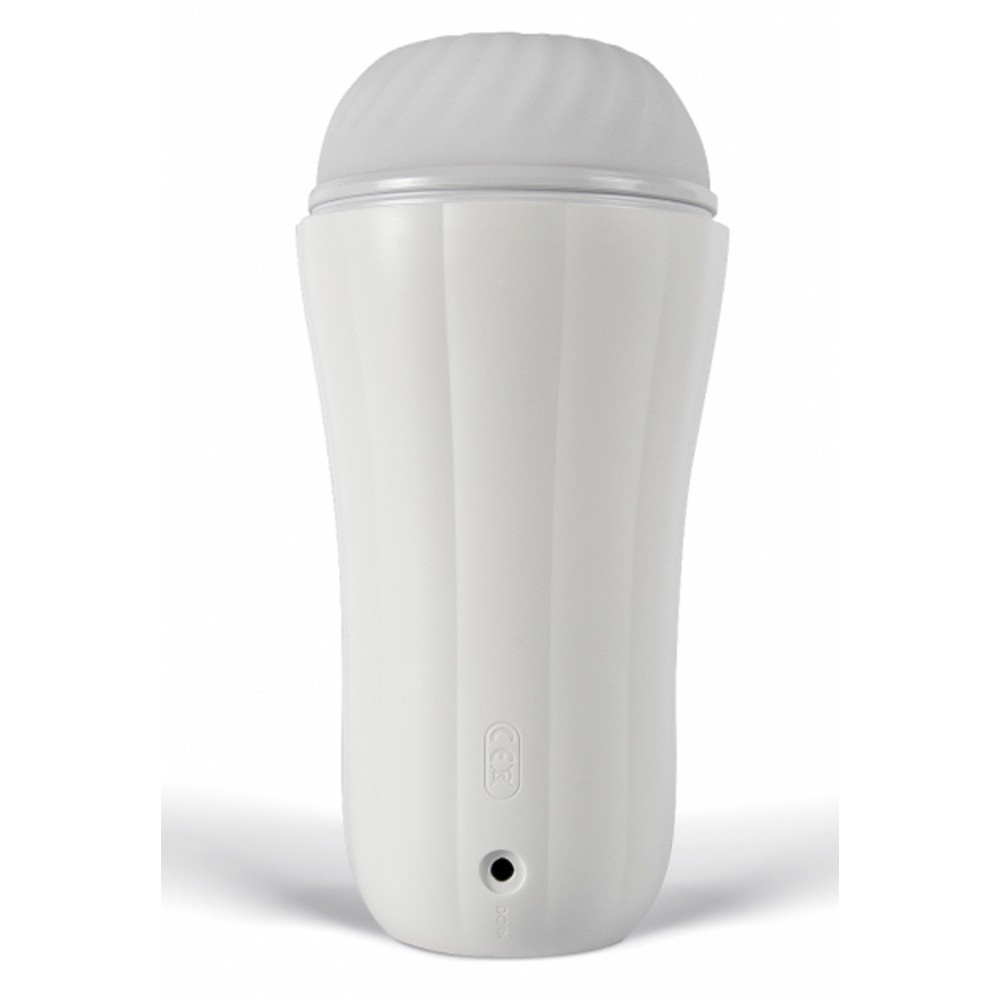 The masturbator includes a soft, elastic sleeve with massage points, adapting to different penis sizes. The sleeve is removable for easy cleaning.