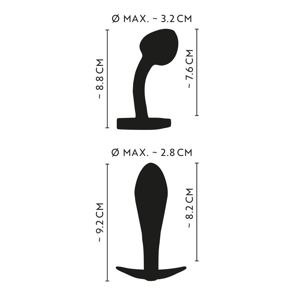 Both plugs have a smooth, seamless surface, ensuring comfortable insertion. They feature a wide anchor base for added safety, preventing excessive insertion and allowing for prolonged use with complete confidence. The straight model also includes a decorative blue gem at the base, adding an appealing visual touch.