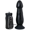 Black anal plug with built-in motor, offering seven vibration patterns at three speeds at the tip.