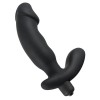 This black vibrator features a slightly wavy shaft with a pronounced glans at the tip and an extra daring feature: an additional stimulator for the perineum, offering a double pleasure experience.
