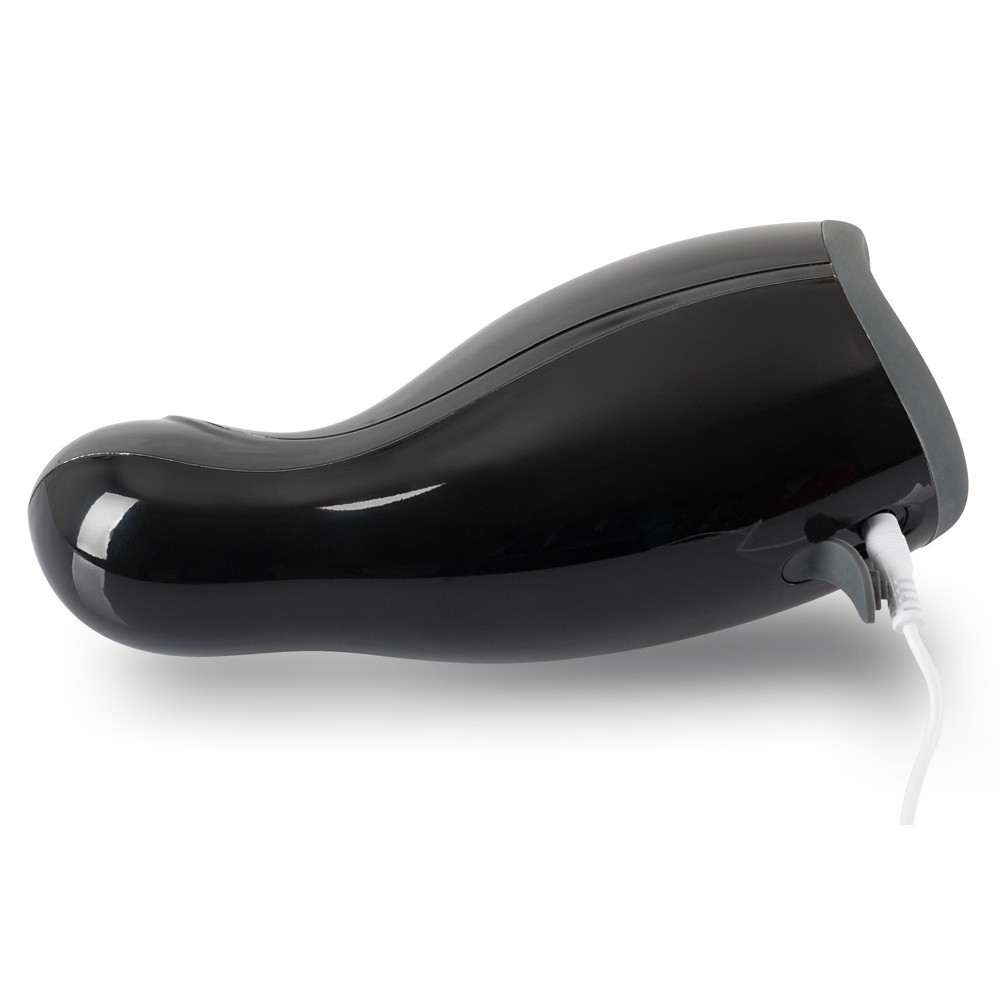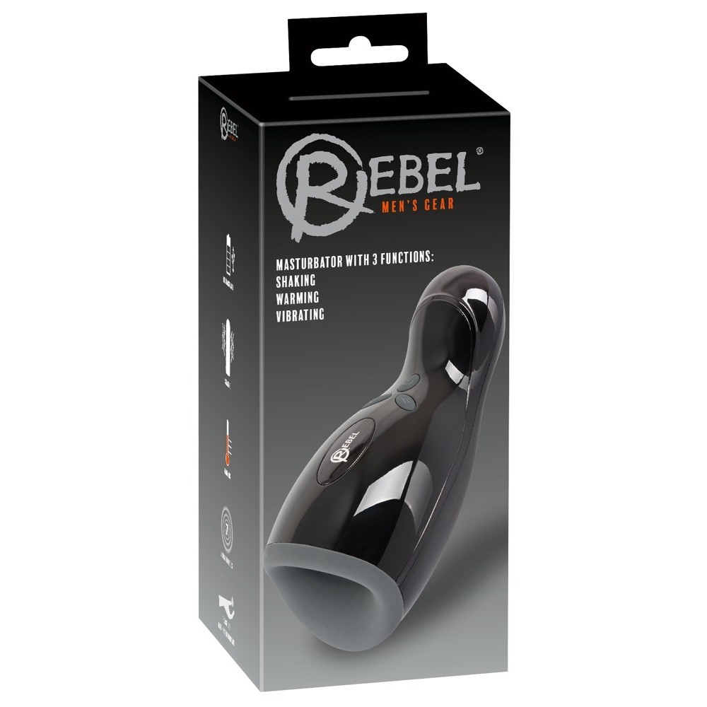 Masturbator with three functions: vibration, heating and up and down movement. Each function can be controlled independently using three buttons. It has 7 vibration modes, 7 speeds of up and down movement and a heating function up to around 40 °C. The sleeve is securely integrated into the device and is not removable. Rechargeable via the included USB cable. Colour: black.