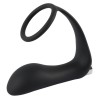 Soft, velvety vibrating butt plug with integrated perineum bar and penis ring. The removable vibrating bullet is rechargeable and offers 10 powerful vibration modes, intensely stimulating the prostate. Includes USB cable for recharging.