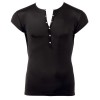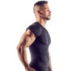 A slightly sheer men’s shirt, made from fine, soft and stretchy microfibre that hugs the body and flatters the silhouette. With short sleeves and silver press-studs at the front, it combines a modern style with a subtly daring touch.