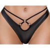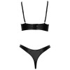 Cottelli LINGERIE set consisting of an underwired bra and Rio-style thong in elegant matte black fabric. It stands out for its decorative elastic straps and silver rings on the neckline and front of the thong. The elastic fabric ensures a perfect and comfortable fit. The bra has adjustable straps and a hook-and-eye fastening at the back.