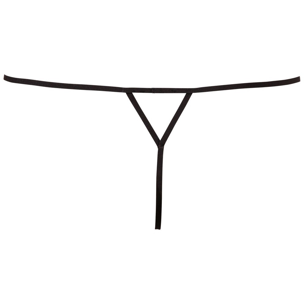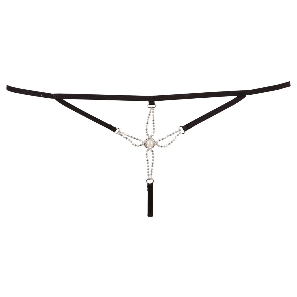 Exciting thong in a strap design, decorated with delicate pearls over the open crotch, creating a bold and seductive look.