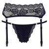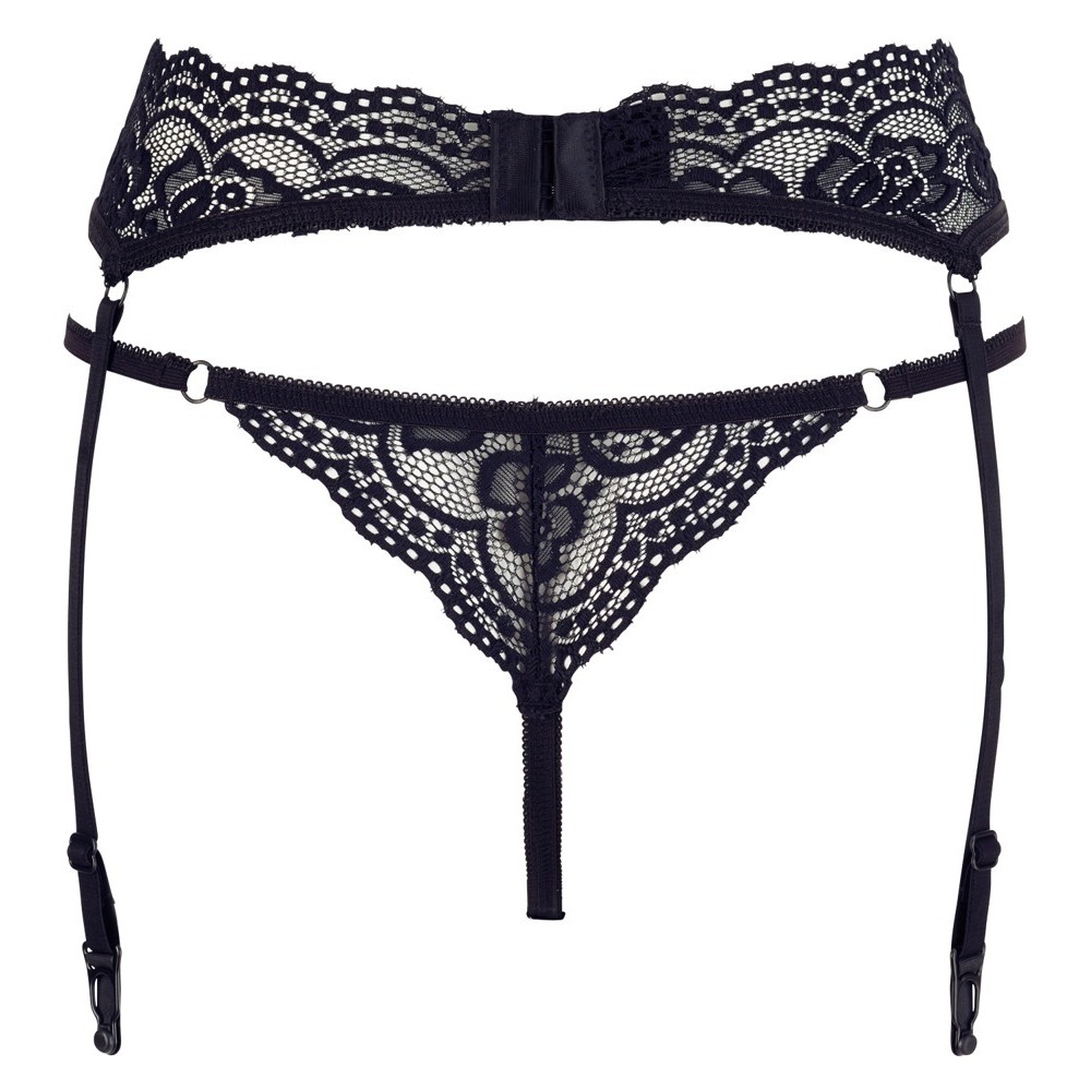 Beautiful lingerie set made of elastic lace. Includes a tiny thong with elastic straps and a garter belt with adjustable straps.