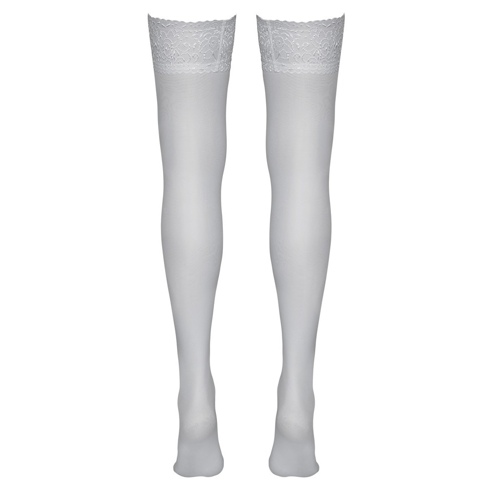 Garter stockings with 7 cm lace top in intense red, ideal for highlighting your legs with a seductive touch. 17 denier, Oeko-Tex certified.
