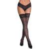 Black Cottelli LEGWARE stockings with a delicate rose pattern. The 9 cm wide top band features silicone reinforcement on the inside for a secure, non-slip fit. Slightly pre-shaped foot for greater comfort and a better fit. 20 denier. Oeko-Tex certified.