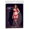 Sensual stockings with red lace at the top, ideal for wearing with suspenders. 20 denier, with slightly pre-formed toe for greater comfort and Oeko-Tex certification.