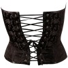 Sensual corset with an elegant brocade pattern. It has shaping boning that enhances the silhouette and a decorative bow at the back. Includes removable suspender straps, allowing for different combinations and styles.