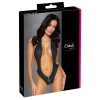 Stunning bodysuit from Cottelli PARTY in an elegant matte black finish, with a provocative open front and completely bare back. The halterneck neckline with collar and zip fastening above the pubic area add a sophisticated and daring touch. The back is enhanced by intertwined elastic bands, joined by a silver ring that completes the design.
