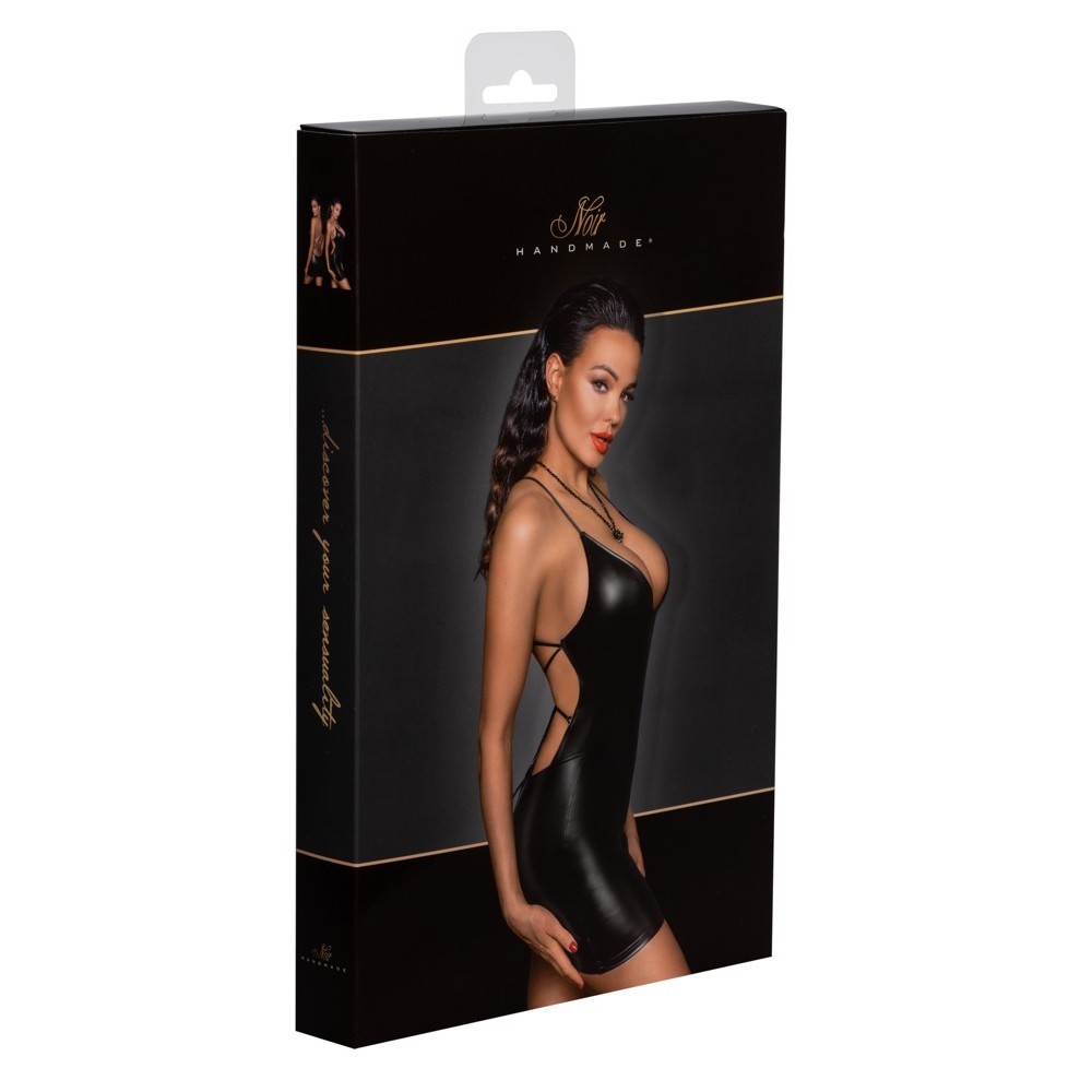 Extra short dress from Noir with sexy bow at the back. Close-fitting cut in an elegant and flexible power wetlook. Soft and stretchy all over for maximum comfort. Deep neckline at the front, thin straps cross at the back.