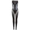 Transparent jumpsuit with a shiny wet look that boldly enhances your curves. Sleeveless design with a bow at the front and a two-way zip at the crotch. The long, discreet zip at the back makes it easy to put on and take off.