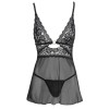 Short nightdress by Cottelli LINGERIE in delicate elastic powernet. The lace cups are joined by an elegant gold ring. The underbust band and bra straps meet at the back, also connected by a gold ring. The bra straps are adjustable for a perfect fit. Includes a classic powernet thong.