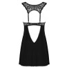 Black Donna Dream chemise by Obsessive, including matching thong. Made from soft, stretchy microfibre combined with elegant stretch lace. Slightly flowing design with lace cups and underwiring to enhance the bust. The back features a deep neckline, delicate lace details and an adjustable hook fastening. The lace straps are also adjustable for a perfect fit.