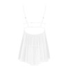 This seductive chemise will set the night on fire with sensuality and elegance. The soft fabric delicately hugs the body, while the floral lace enhances the bust with a provocative touch. It features adjustable straps at the shoulders and back for a perfect fit, as well as a sparkling pendant between the breasts that adds charm. The set includes a nightdress and thong, made from soft-touch materials.