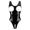 Black Level teddy made entirely of shiny black vinyl. The two elasticated cut-outs with stitching are extremely provocative and leave the chest completely exposed. The opening in the crotch area is equally daring and inviting. The long zip at the back makes it easy to put on and take off.