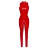 The Black Level sleeveless jumpsuit is made entirely of shiny red vinyl, with an extremely tight fit that shapes the silhouette in the most provocative way. The long, narrow legs elongate the body, while the highlight is the practical and erotic two-way zip, which extends from the stand-up collar, passes through the crotch and ends at the top of the buttocks. For even more daring, the zip can be quickly opened at both ends, offering multiple options for style and seduction.