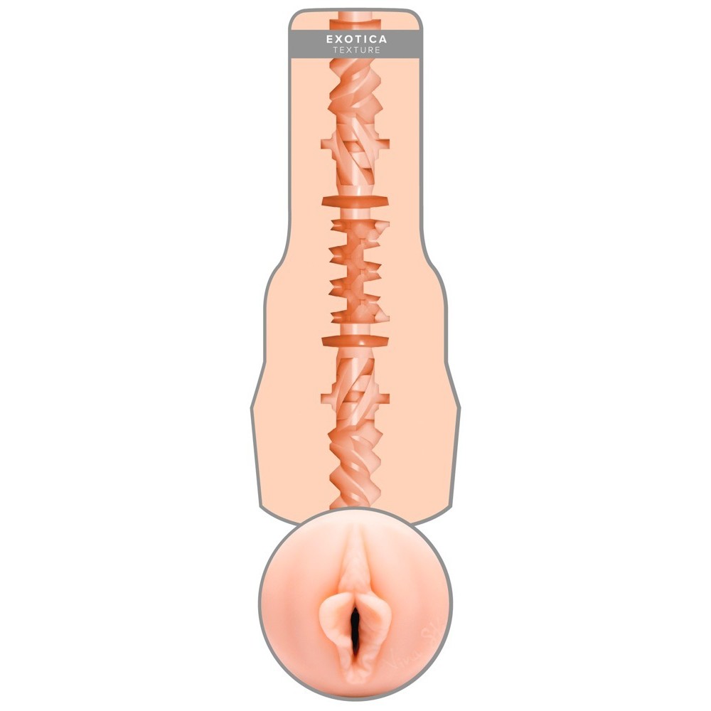 Masturbator with vaginal opening, presented in an elegant pearl white case. Includes a realistic replica of the intimate parts of erotic star Vina Sky Exotica. The interior of the pleasure tunnel combines dots, ribs and grooves of different sizes for intense and varied stimulation. With protective cap and the star's signature next to the opening. Superskin texture for an extremely realistic feel.