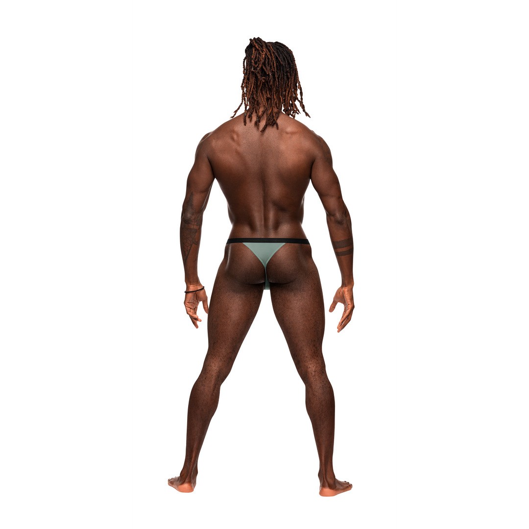 From the Male Power Magnificence collection this style includes a Micro V Thong with a cut out window on the waist , decorative metal grommets, and a slim, stay put plush elastic waistband, with a V shaped fabric insert in t-back.