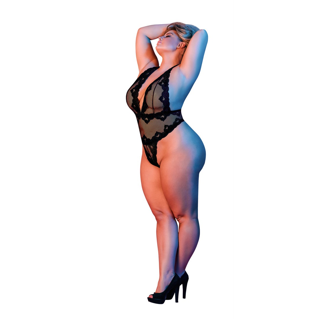 From the Exposed by Magic Silk collection, this teddy features halter neck straps, a deep V-neckline, high-cut sides and a thong bottom. The combination of lace and mesh creates a romantic design that enhances your curves with elegance and sensuality.