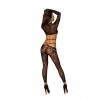Two-piece mesh set with zebra pattern and adjustable straps. Includes long-sleeved bra with built-in fingerless gloves, turtleneck and cropped design with ring detail and decorative strap. Matching zebra mesh footless leggings with the same metal ring and elastic detail. Thong not included. A bold and modern set, ideal for those looking for sensual and distinctive lingerie.