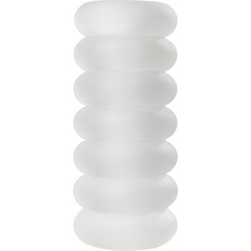 The unique triple-textured pleasure tunnel features large massage pearls at the entrance, pronounced ribs in the middle, and small stimulating pearls that taper to a tight open end.