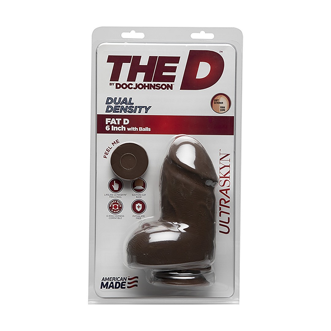 Everyone wants it! Handcrafted from ULTRASKYN™, with an extra thick shaft and glans, the Fat D features a realistic look and texture, with prominent veins and Doc Johnson's dual-density design. The soft, cushioned exterior combined with the firm core provides an authentic feel, while the generous size ensures an intense feeling of fullness in any type of play. The strong suction cup base attaches to most flat surfaces, allowing for hands-free use and completing the realistic experience.