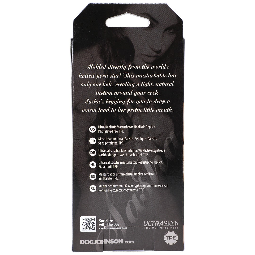 Legendary porn star and mainstream darling Sasha Grey is ready for some steamy oral action. Sasha's Cream Pie Pocket Pussy is hotter and more popular than any other pocket pussy on the market. Get even more pleasure with Sasha's Deep Throat Sleeve, moulded directly from her sensual lips. With a closed end, suction is intensified. Made from ULTRASKYN, it offers a luxurious, lifelike feel. Proudly made in America. Enjoy while it's available.