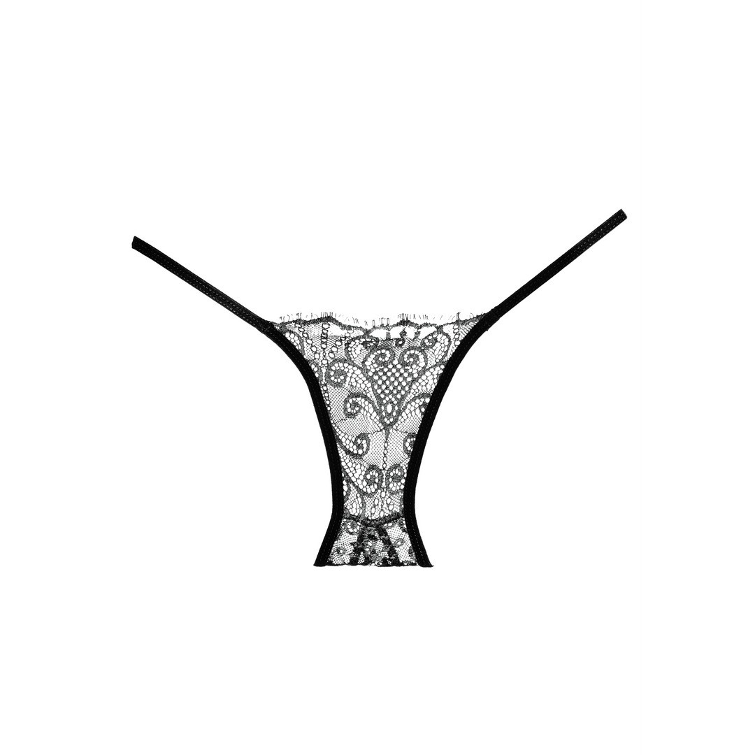 This delicately wispy lace panty has a heavenly cutout back.