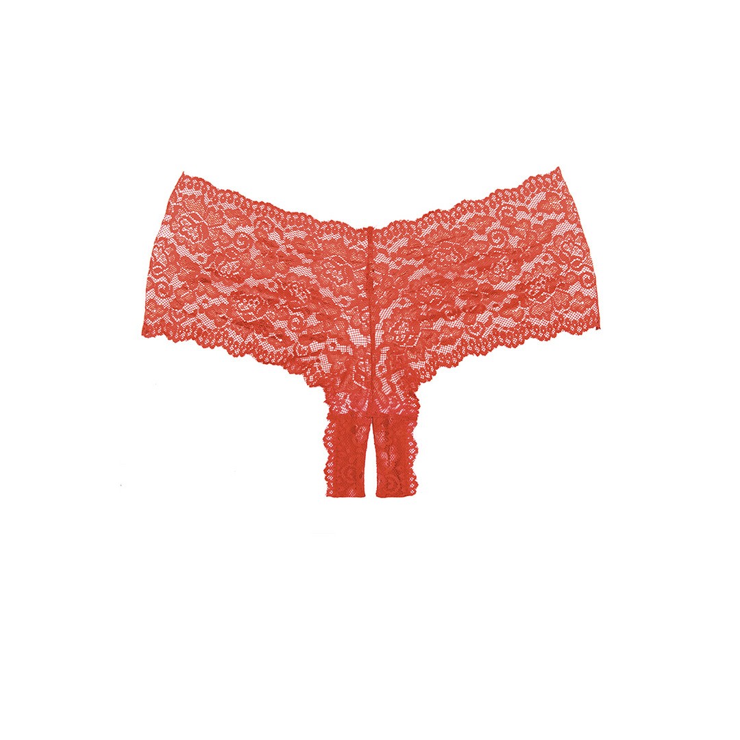 The classic lace booty short gone wilde with a crotchless twist, hugging the hips and sweetening the derriere.