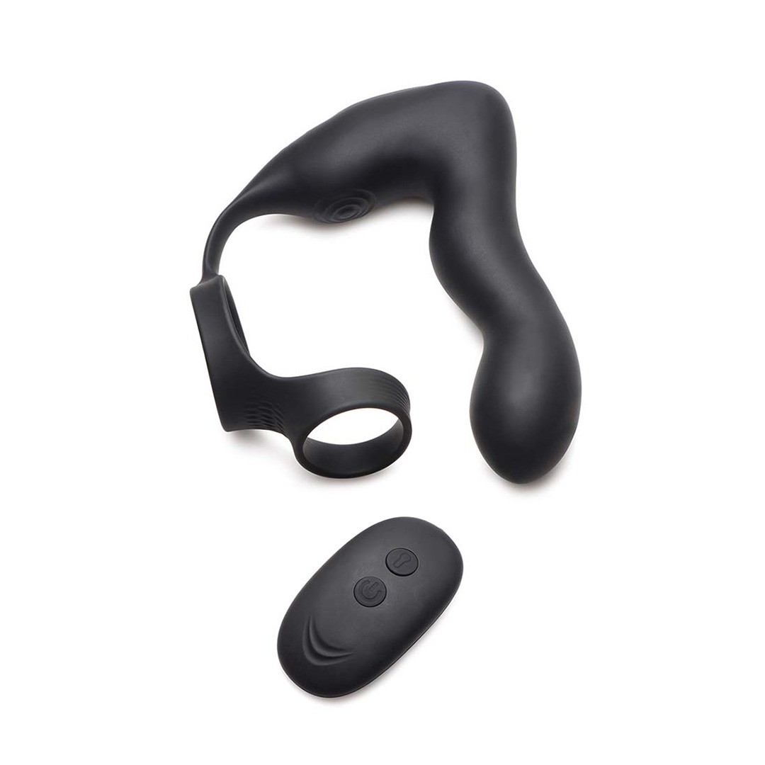 Inflatable silicone prostate stimulator with 3 speeds and 7 vibration patterns, constriction rings and remote control.