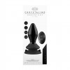 Chrystalino glass anal plug with 10 vibration modes, suction cup base and wireless remote control.