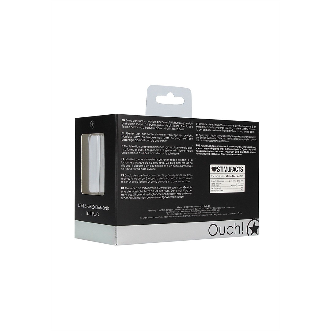 Experience pleasure and elegance with this silicone butt plug, featuring a conical shape and a base adorned with a stunning diamond.