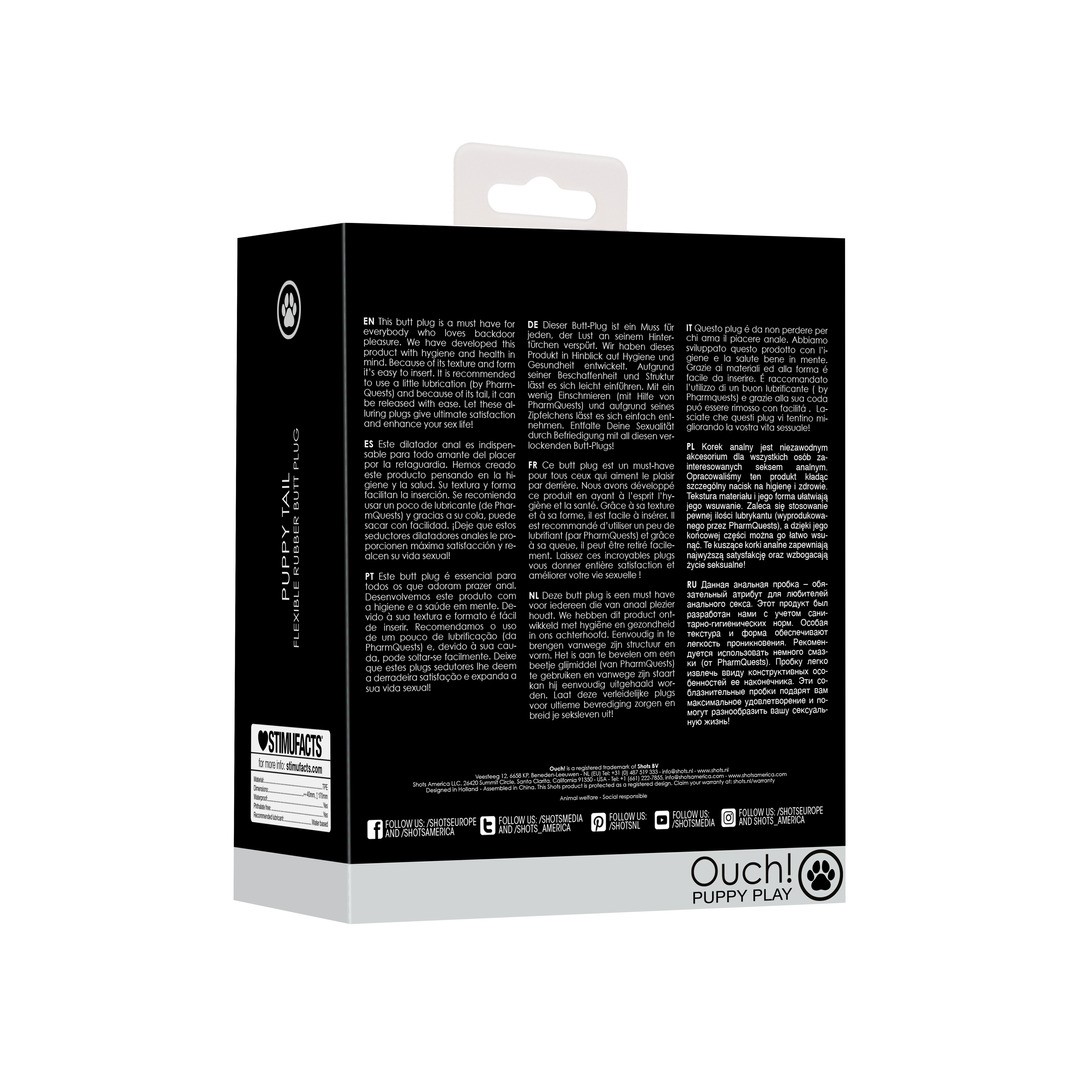 The Puppy Play Anal Plug with Tail from Ouch! provides intensified pleasure and role-play fun thanks to its soft texture and easy insertion. It's perfect for providing safe and exciting anal pleasure, thanks to its ergonomic design and practical tail for easy removal.