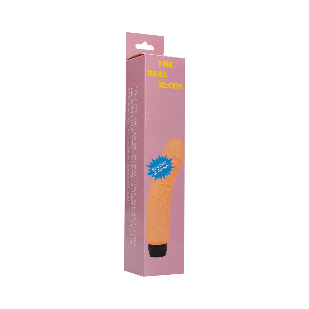 Realistic rubber vibrator with veined texture, pink glans and multiple speeds.