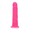 REALROCK Glow in the Dark Dildo, 17.5 cm, body-safe, with suction cup, harness-compatible and suitable for anal or vaginal pleasure.
