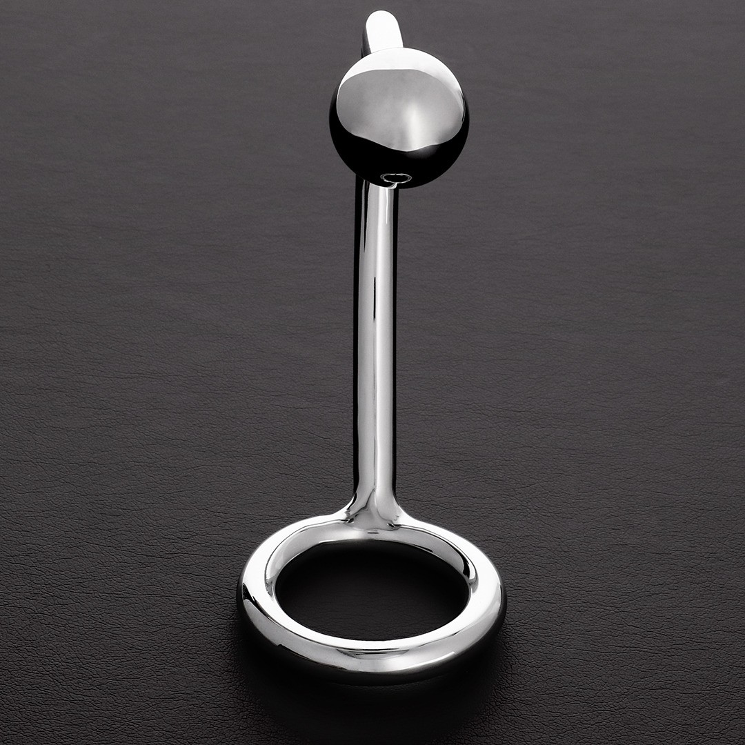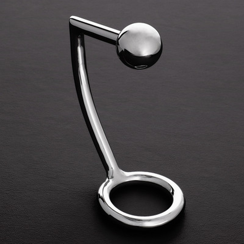 Stainless steel cock ring with removable anal ball for greater comfort and pleasure.