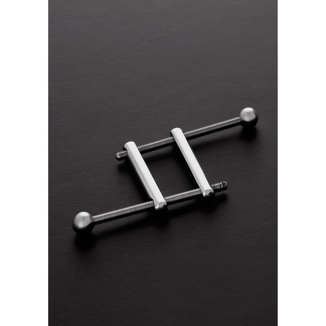 Adjustable stainless steel penis and testicle clamp, ideal for intense CBT practices.