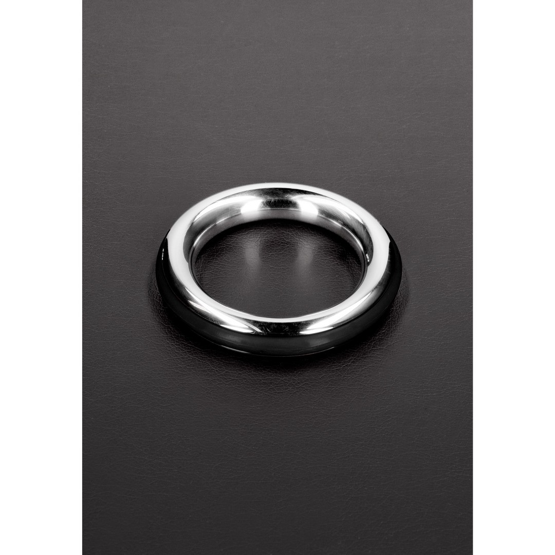 Stainless steel cockring with coloured silicone to prolong erection and add style.