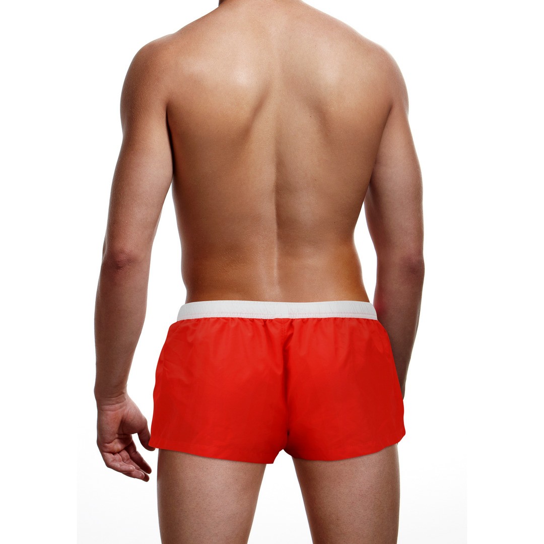 Prowler red polyester swim shorts with an elasticated waistband and a slim fit that exudes confidence and style.