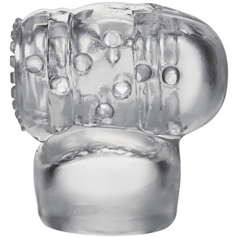 Textured, transparent accessory for massage wand, with extra-large nodules and suction effect.