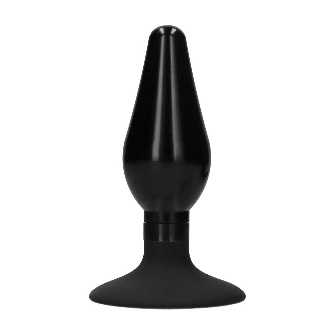 Anal plug with aluminium and silicone accessories, medium head, ergonomic handle and powerful suction cup.