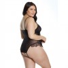 Soft mesh and lace teddy with no crotch, decorated with ruffles, buttons and bows for an elegant and daring look.