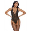 Teddy in maglia a maglie con collare, schiena incrociata e reggicalze per un look delicato e seducente.