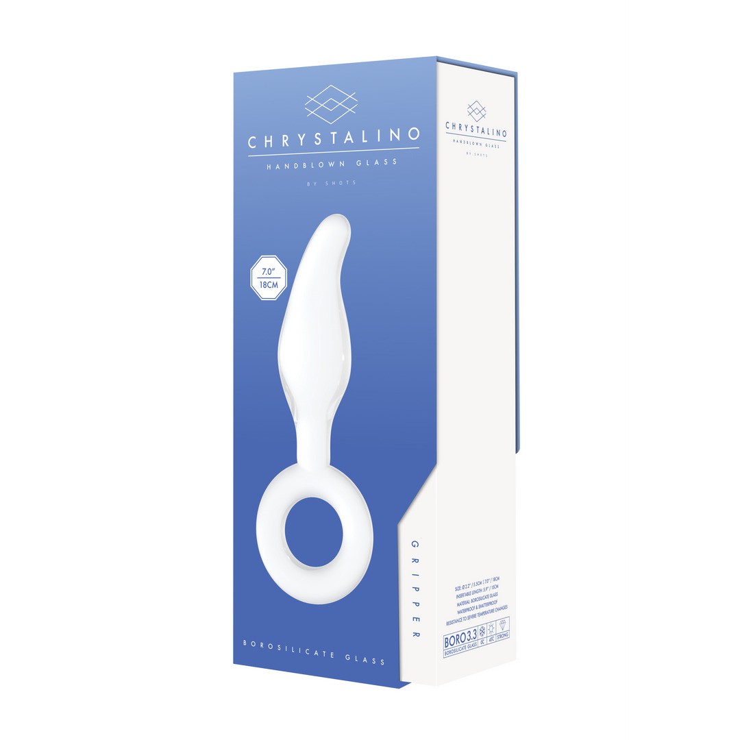 The unique shape of this Gripper anal plug is designed for vaginal and anal play. Simply place it under a stream of warm or cold water and the high-quality borosilicate glass material will heat up or cool down, providing an enhanced experience with temperature variations.