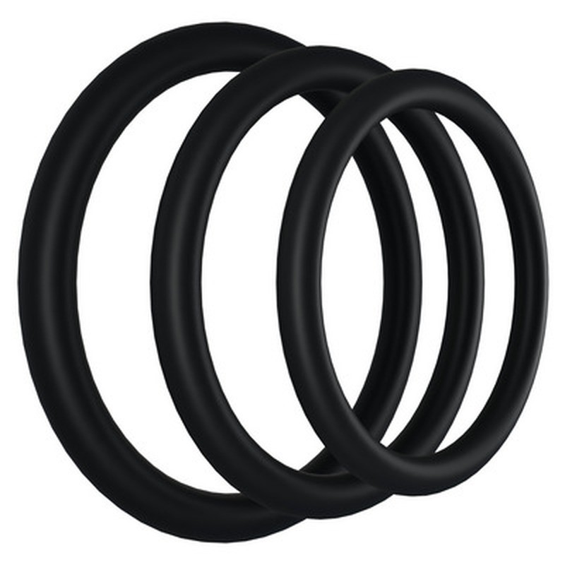 Set of three thin, stretchy TPE cockrings for longer-lasting and more comfortable erections.