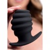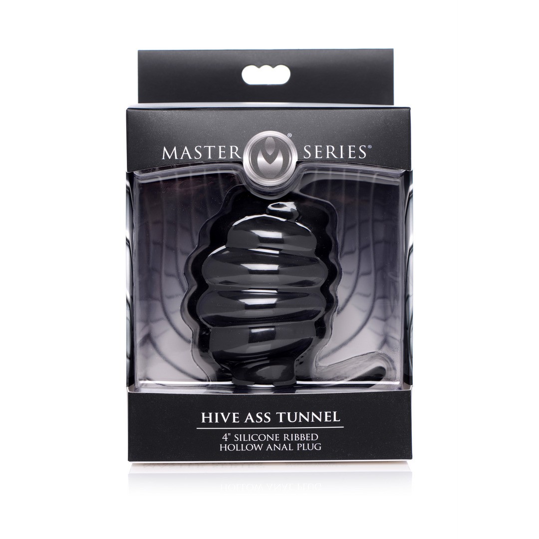 Hollow anal plug with stimulating grooves and central tunnel, ideal for intense anal play and deep exploration.