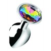 Rainbow Prism Gem metal anal plug with coloured gem, comfortable weight and ideal for temperature play.